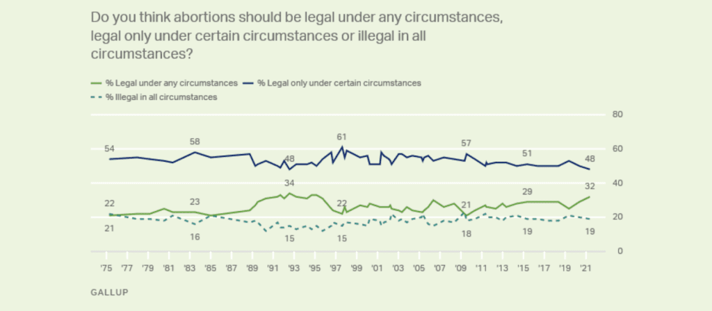 All of this happened as American views on abortion remained remarkably stable from the late 70s until recently.