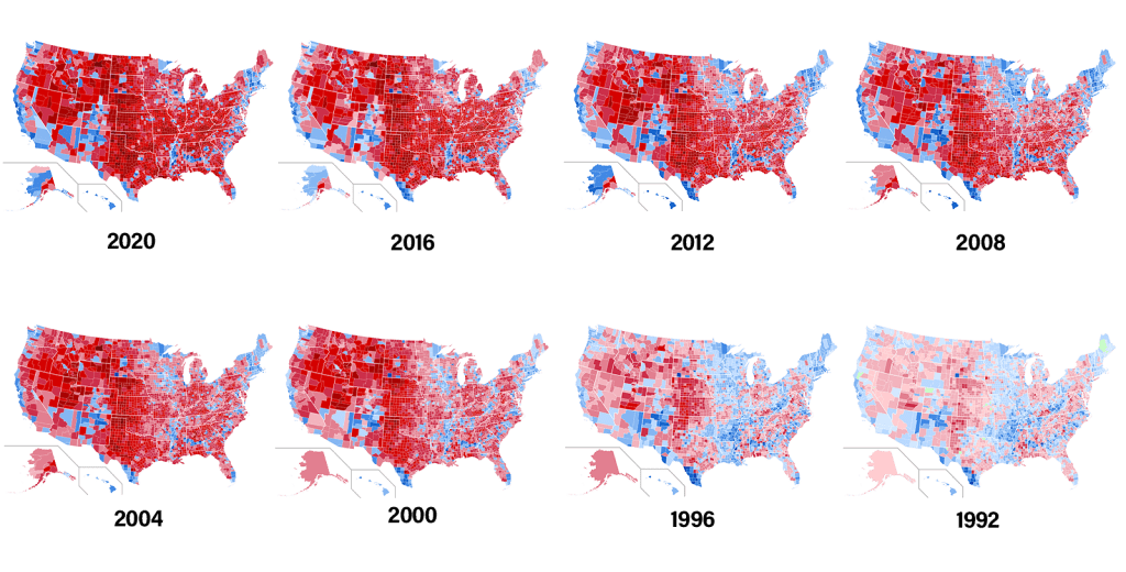 And yet, it wasn’t always. Watch how the state’s congressional counties change over time, starting from the last time a Democratic presidential candidate won the state: Bill Clinton.