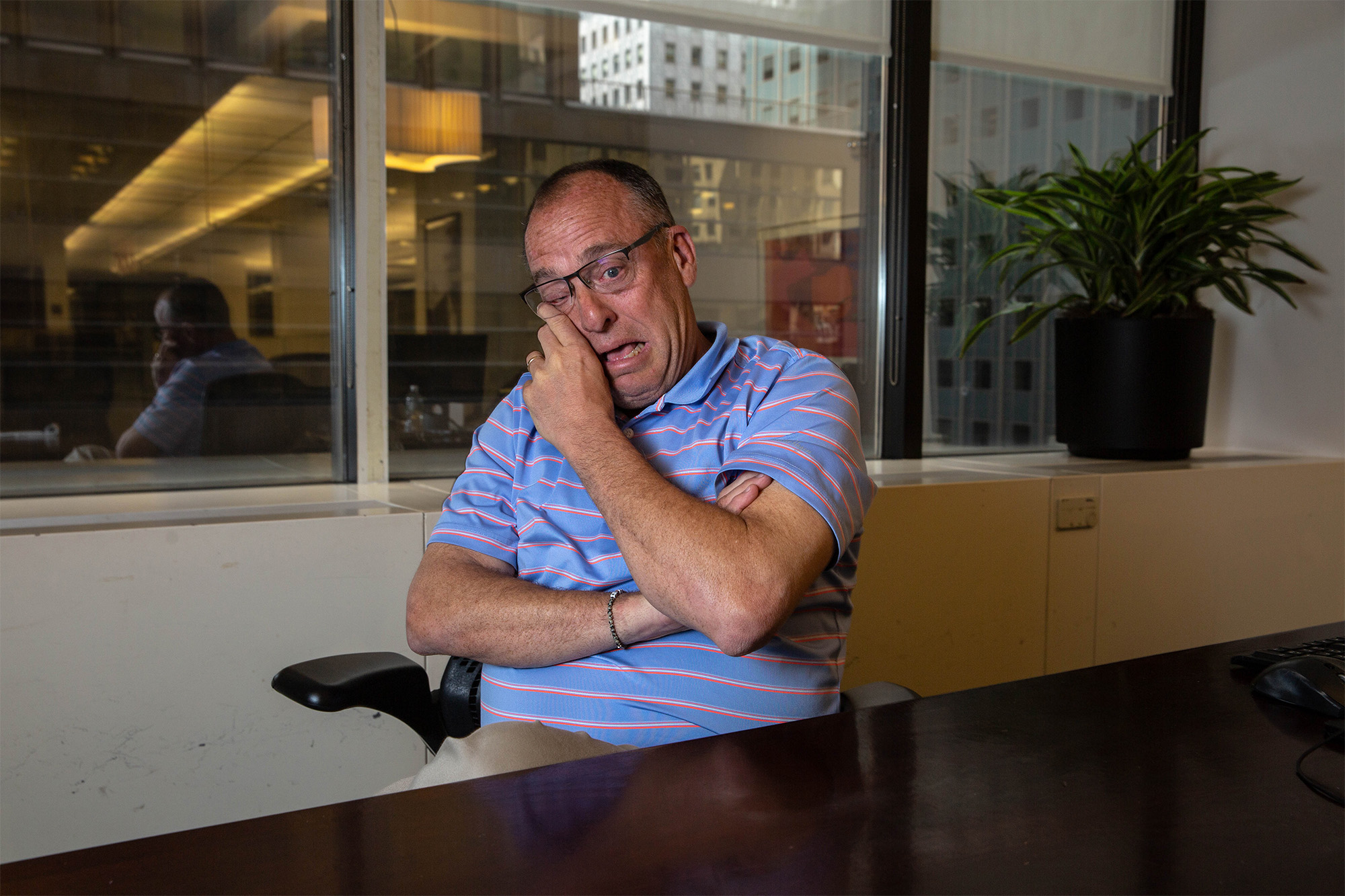 Kurt Kiess breaks down as he talks about his son, Ryan. Ryan was killed in a vicious car accident in Long Island and since his death Kiess has petitioned a bill in Albany that would allow families to sue for emotional loss. At Kiess' office in Manhattan, New York, N.Y. on Wednesday May 18, 2022. (Wes Parnell/Lost Debate)