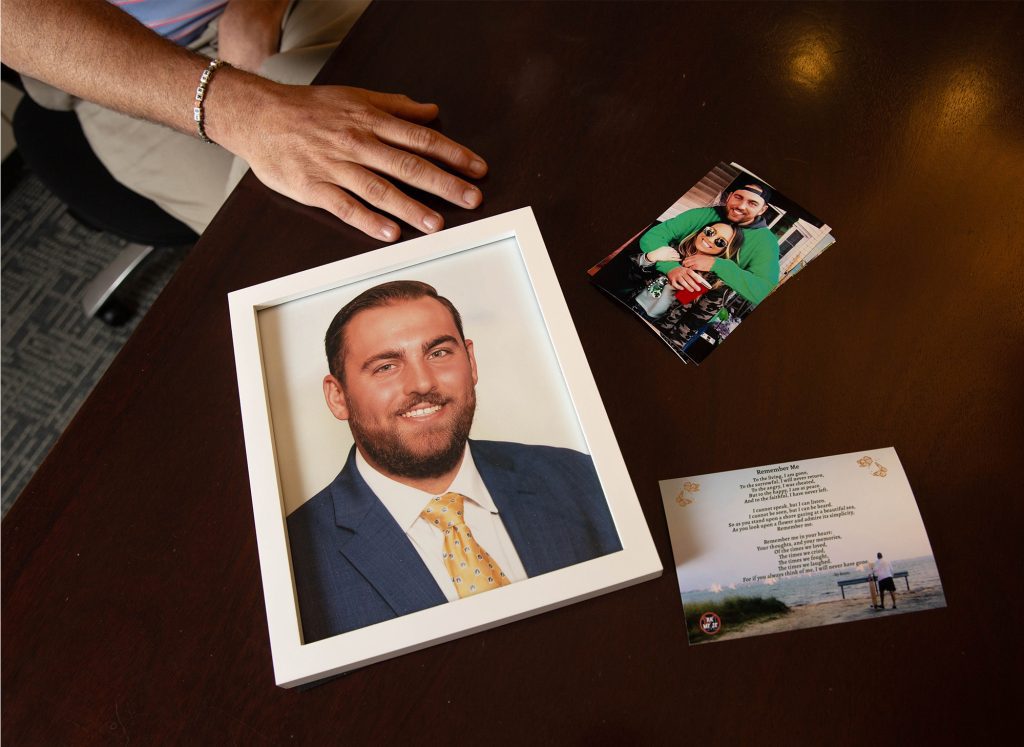 Kurt Kiess shares images of his son, Ryan. Ryan was killed in a vicious car accident in Long Island and since his death Kiess has petitioned a bill in Albany that would allow families to sue for emotional loss. At Kiess’ office in Manhattan, New York, N.Y. on Wednesday May 18, 2022. (Wes Parnell/Lost Debate)